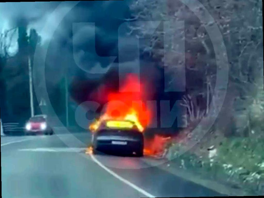 Автомобиль полностью сгорел, но по информации «ЧП Сочи», люди не пострадали. Причины пожара пока неизвестны.