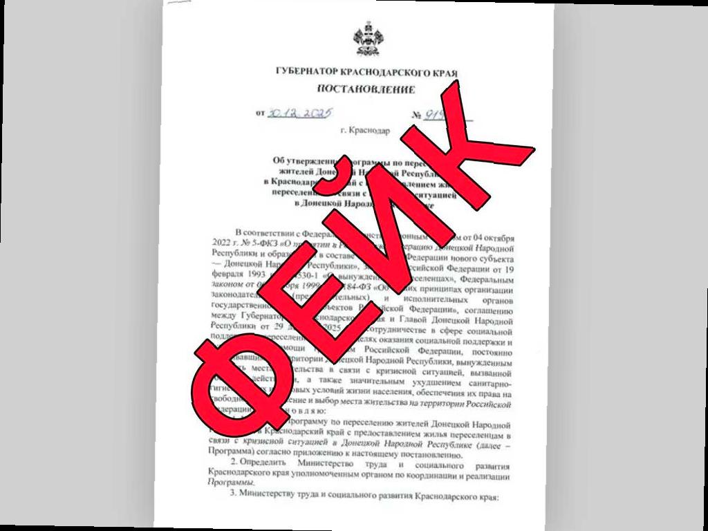 Представители оперативного штаба Краснодарского края развенчали очередной миф. В интернете появилось фальшивое постановление, которое приписывается губернатору и касается предполагаемого переселения жителей ДНР на территорию региона из-за кризиса.