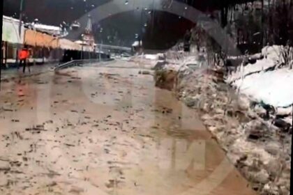 На дороге, ведущей к курорту «Роза Хутор» в горном кластере Сочи, произошел сход селевого потока. Грязека...